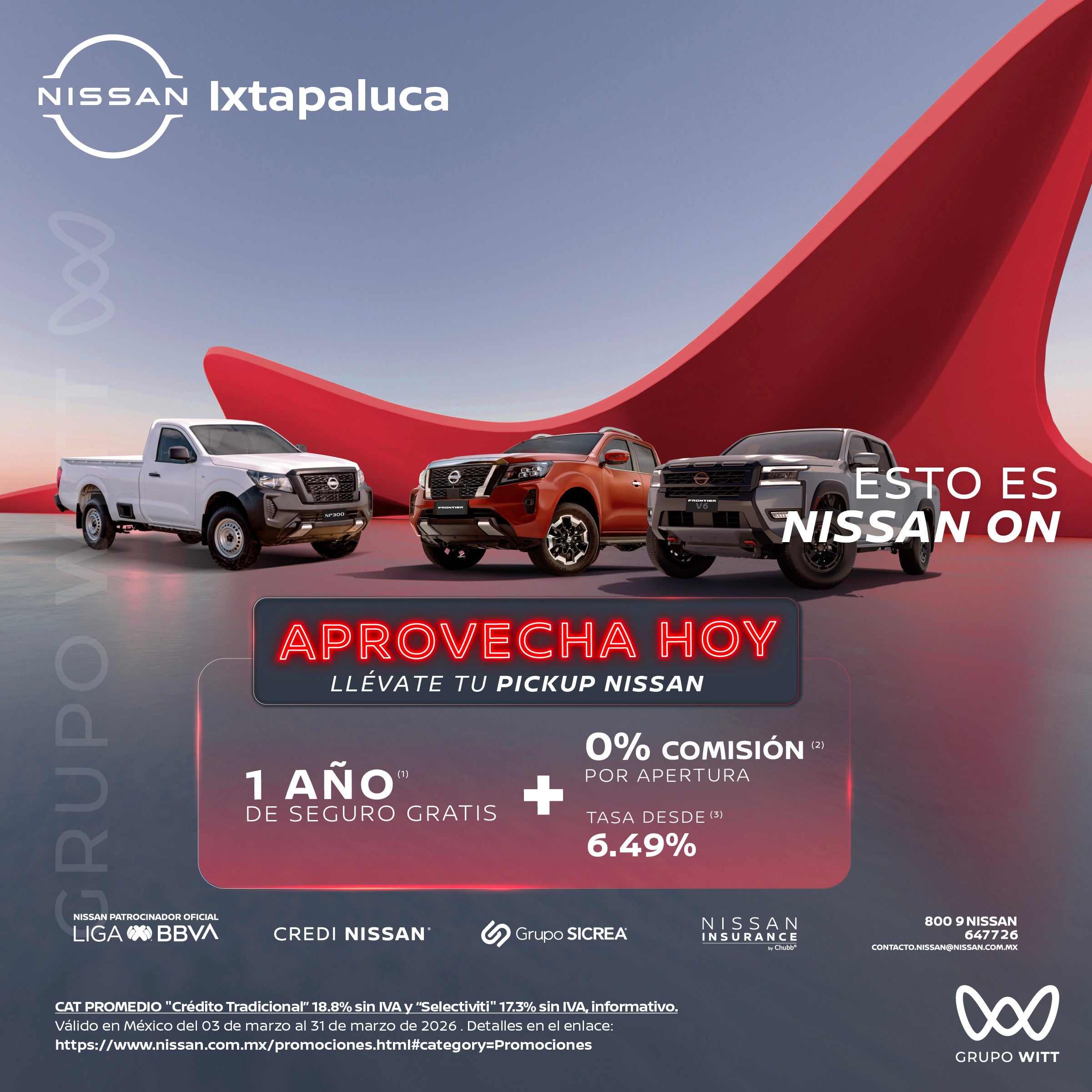 CAT PROMEDIO "Crédito Tradicional" 18.8% sin IVA y "Selectiviti" 17.3% sin IVA, informativo. Válido en México del 03 de marzo al 31 de marzo de 2026. Detalles en el enlace: https://www.nissan.com.mx/promociones.html#category=Promociones