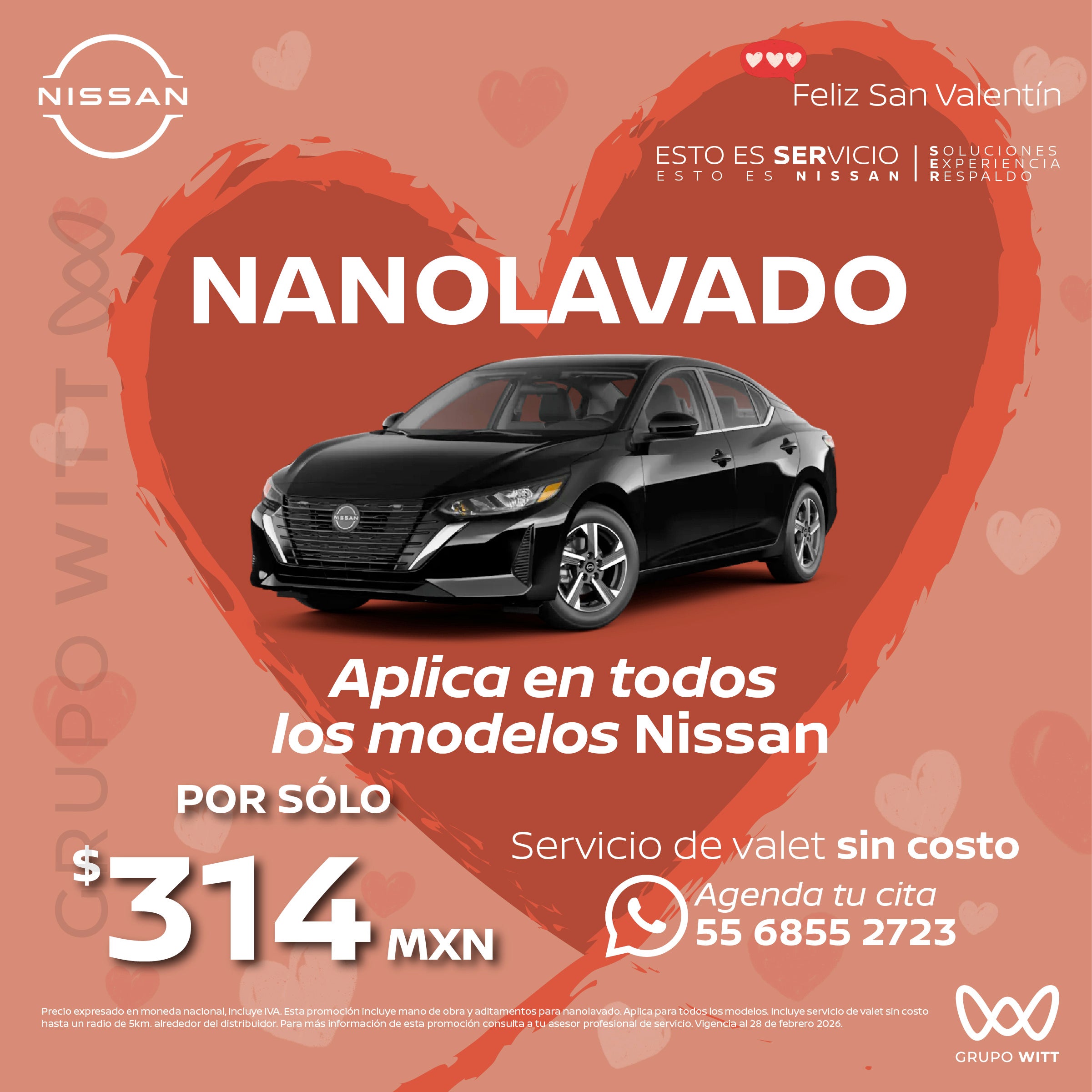Precio expresado en moneda nacional, incluye IVA. Esta promoción incluye mano de obra y aditamentos para nanolavado. Aplica para todos los modelos. Incluye servicio de valet sin costo hasta un radio de 5km. alrededor del distribuidor. Para más información de esta promoción consulta a tu asesor profesional de servicio. Vigencia al 28 de febrero 2026.