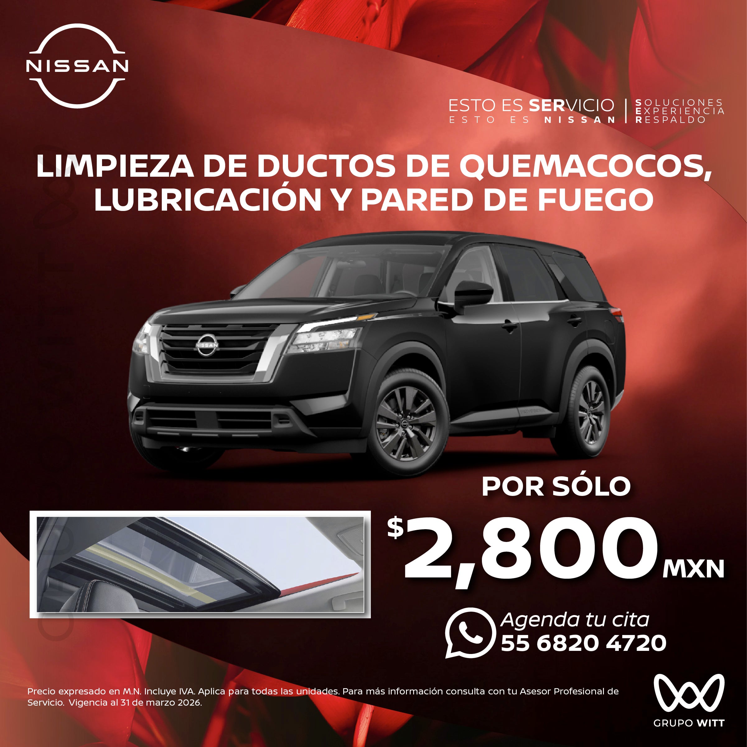 Precio expresado en M.N. Incluye IVA. Aplica para todas las unidades. Para más información consulta con tu Asesor Profesional de Servicio. Vigencia al 31 de marzo 2026.